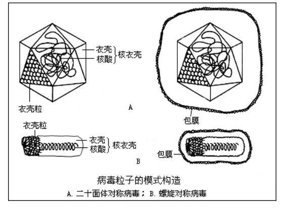 根据衣壳粒排列方式的不同将病毒分为三种对称类型: