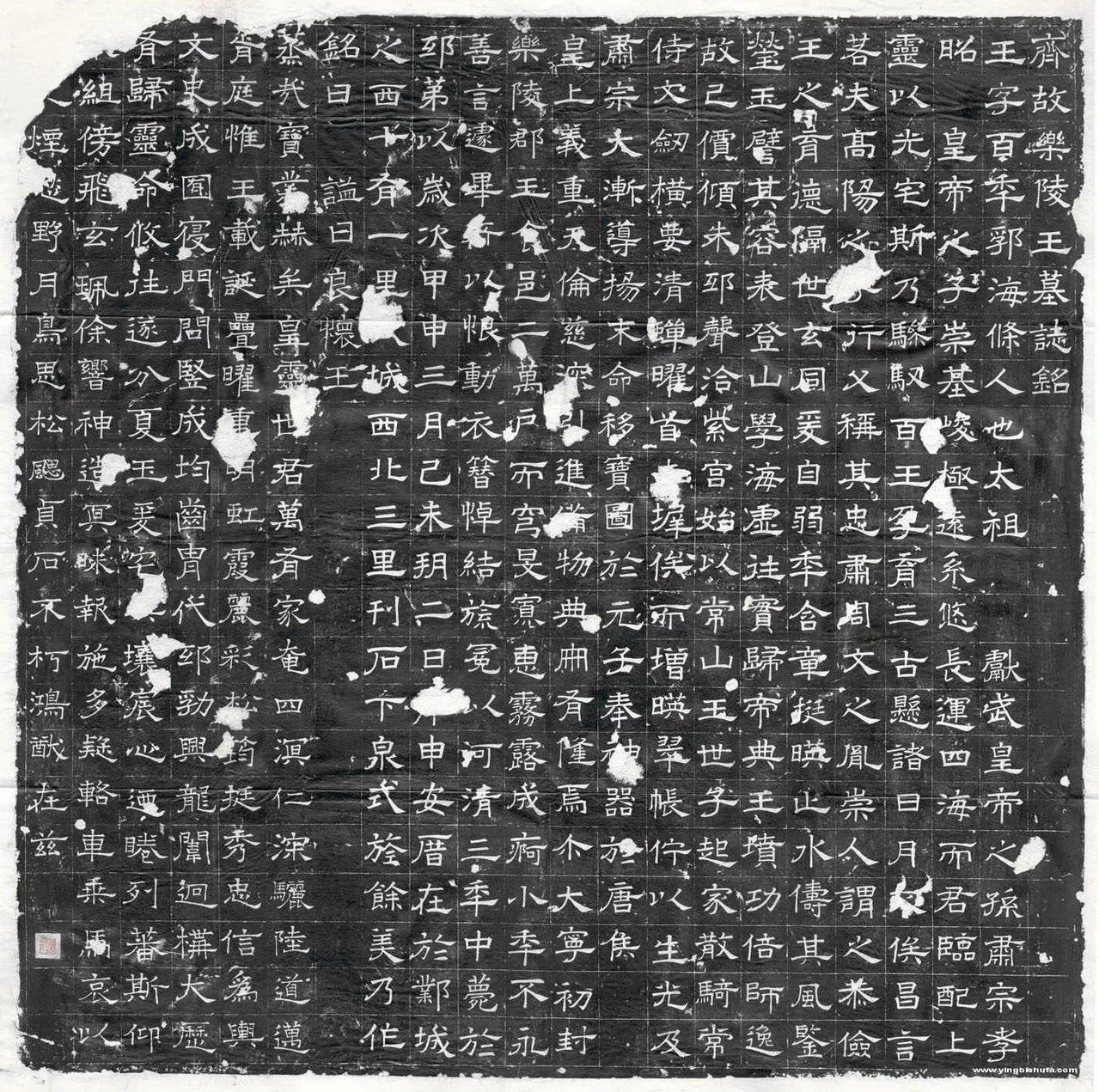 蒸哉宝业,赫矣皇灵。世君万有,家奄四溟。仁深骊陆,道迈胥庭。杀切能至质原太惟王载诞,叠曜重明。虹霞丽彩,松筠挺秀。忠信为舆,文中成囿。寝门问竖,成均齿胄,代邸勃兴,龙闱回构。大历有归,灵命攸往。遂分夏玉,爰 奥壤。宸心乃眷,列蕃斯仰。龟组傍飞,玄佩徐响。神造冥昧,报施多疑。辂车乘马,哀以随之。烟愁野月,鸟思松飔,贞石不朽,鸿猷在兹。