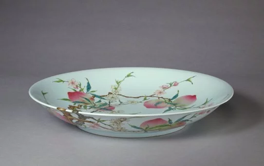 - 名 称 清雍正粉彩过枝桃树纹盘