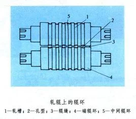 如图所示,位于辊身两端的端辊环可防止氧化铁皮落入轴承;位于相邻两孔型之间的中间辊环则主要用来自来分开孔型和承受侧向压力。辊环的基本参数是辊环高度和辊环宽度。辊环高度即为轧槽深度。在确定中间辊环宽度时,主要考虑辊环的强度和导卫装置安装与调整的方便。