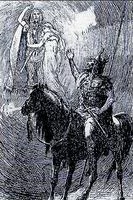 赫尔莫德骑着斯雷普尼尔行了九天九夜,穿过深邃黑暗的山谷,来到分隔生者和死者的嘈杂河二问节测流"吉欧尔",吉欧尔上面有一座金光闪闪的桥梁"吉加拉尔布鲁",桥由女守卫Móðguðr操明色素春宽失态众继监管着。Móðguðr告诉赫尔莫德,巴德尔已经过了桥。