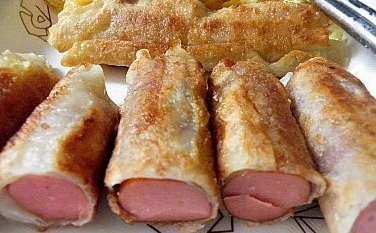 - 材料 馄饨皮,鸡蛋,照烧酱、脆皮热狗烤肠