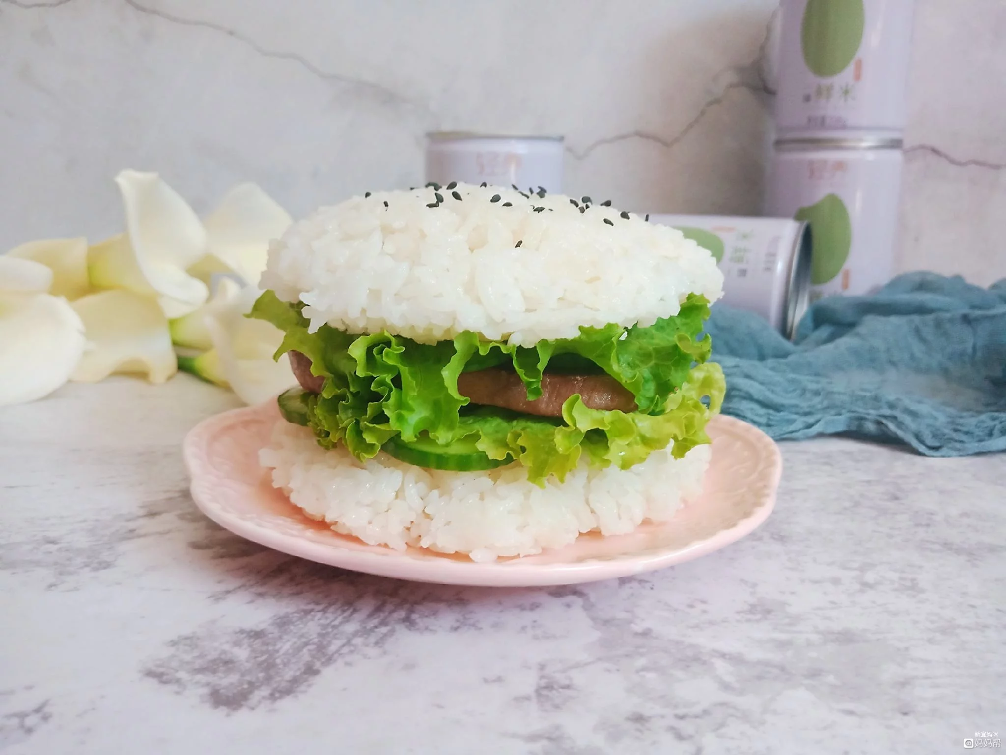 烤肉米饭汉堡是以米饭、生菜、里脊肉为主料的食品。