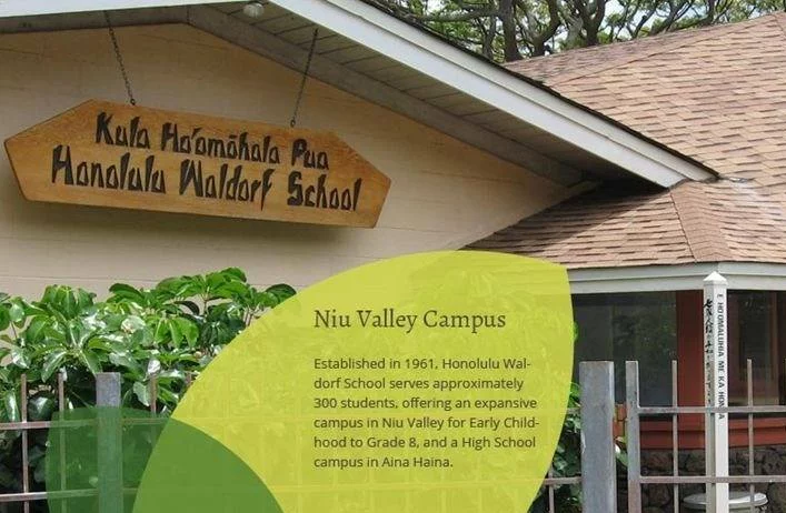 学校建于1961年,是一所男女混校制私立学校,共有300多名学生。原有的幼儿班至8年级校区位于檀香山Niu山谷,中学校区已于本学年迁至位于AinaHaina的永久校区,毗来自邻海滨,风景秀美。基于呀任怎Rudolf Steiner博士的教育观,"华德福教育"成为世界上发展微最快的私立教育,在全球已有一千多所华德福学校。而檀香山华德福学校将在2016年十月迎来它五十周岁的生日。