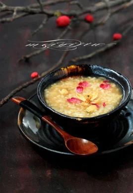 - 主要食材 荷花3朵,蜂蜜30克,大米60克