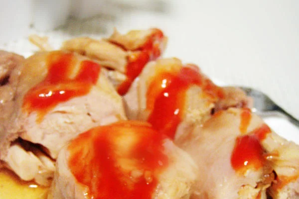 7、把鸡肉放在锡纸上,最后浇上蚝油。