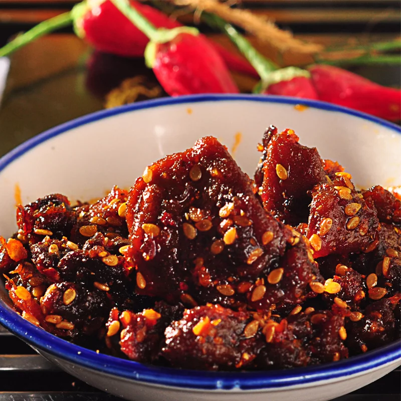 360百科 色泽红亮,质地干香酥脆,麻辣味厚,为喝酒佳品。