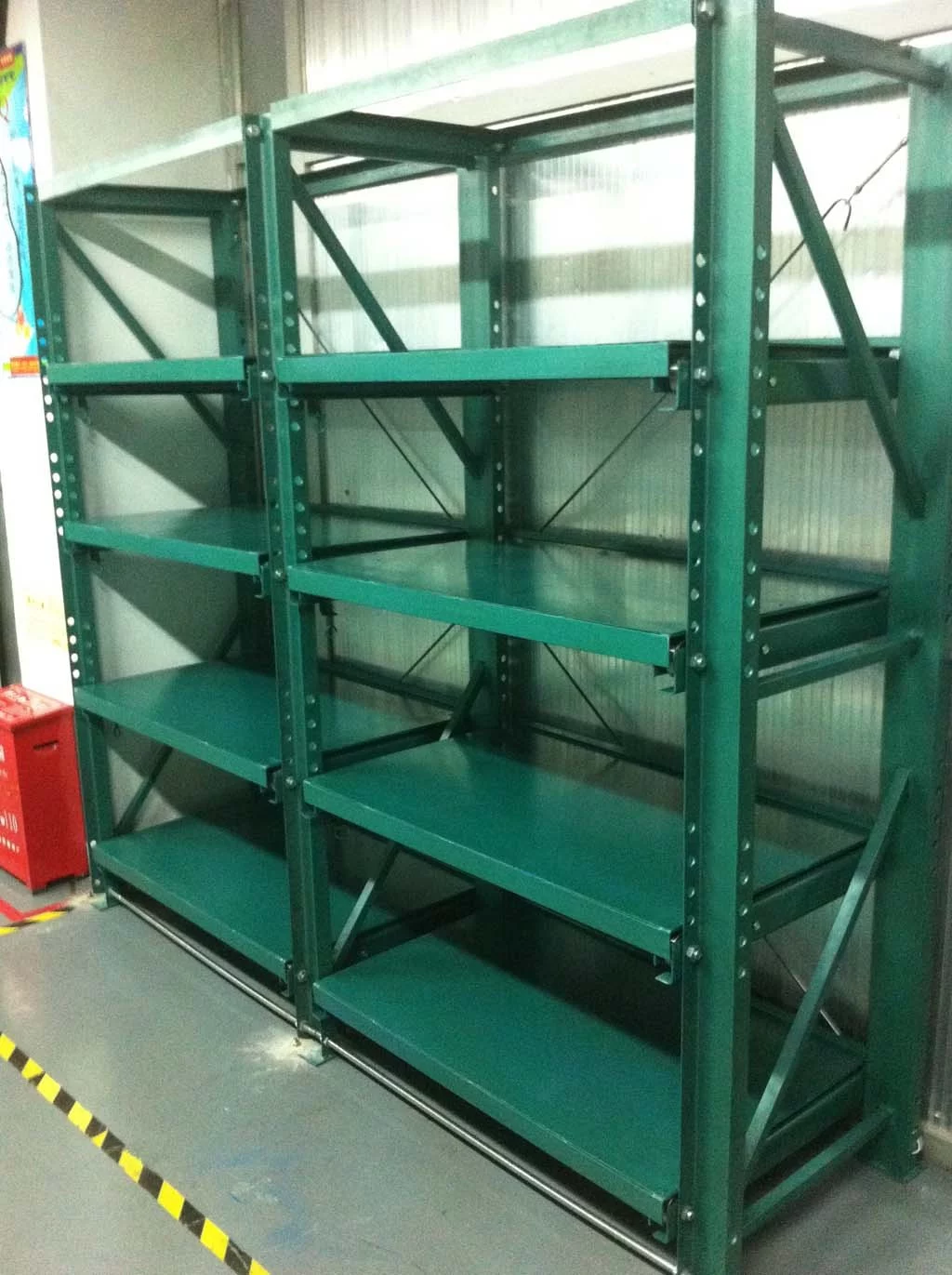 6、模具货架还可以在货位式货架的横梁上做抽屉盘,成本跟节约,结构更稳固。