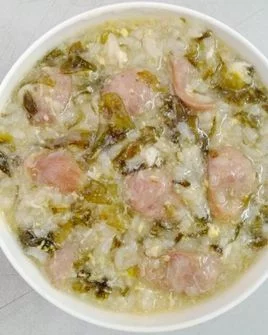 紫菜火腿粥是一种美食,材料有紫菜、火腿、大米等。