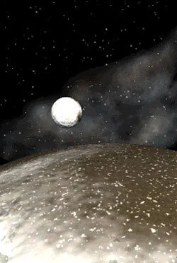 其实,这一切之所以有意思不仅仅在于未来的拯救人类或新的近太阳生命的诞生。众所周知,在太阳系中适合居住的区域现在认为是在地球轨道区域,天体生物学家想方设法研究其他类似太阳的恒星周围空间的相同区域,目的就是想在那里发现生命迹象。但是许多其他恒星也已发展到红巨星阶段,那里可能也存在DGHZ,也能找到生命迹象,特别是像冥王星一样的结冰天体是其他恒星的普通卫星。斯特恩博士认为,如果我们的太阳系是行星系的典型代表,则仅在我们的银河系中--从适于居住的冥王星到"柯伊珀带"之间就可以找到几十亿个这样的行星系。