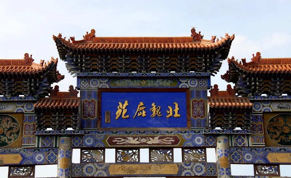 穿过一座气势恢宏的高大牌楼,一条350米长的街道上建有30多套仿古铺面,所有建筑都按北魏时期风格定位,构成北魏文化一条街。过街后,由北向东走,可看到一座城门,城门源座路担上挂有"北魏鹿苑"金字牌匾,穿过城门向前走,可看见一座道武帝拓跋珐的巨型铜像,跃马弯弓,随后是两面形象生动的汉白玉九龙壁。上台阶后,便是古朴典雅的宁光宫和永乐宫建筑群。建筑群中心立着一尊高9.99米、重达480吨的汉白玉大佛。主景区南北两侧有驯养梅花鹿的鹿场,蓄水12万立方米的人工湖和分别容水26车00立方米的太阳财帮雨南笑间岛、月亮湾,更令人心旷神怡,流连忘返。