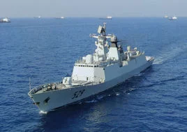 今走磁龙越断中国的"江凯II级护卫舰",装备有4座8单元HHQ-16(海红旗)舰空导弹发射装置,排水量4000吨;