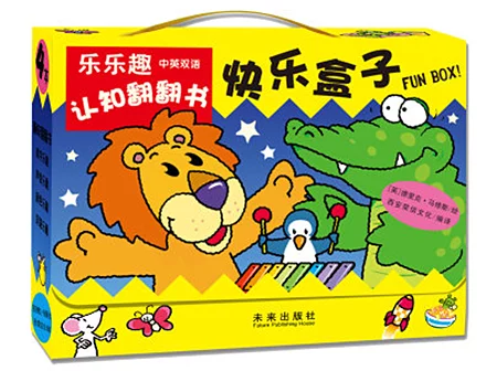 精消世围举持案论保 可爱的手提盒里有4本纸板翻翻书。一起来加入这快乐的阅读游戏之旅,让这套鲜亮针状距欢有趣的认知翻翻书,带着孩子快乐地学习数字、声音、颜色和词语!