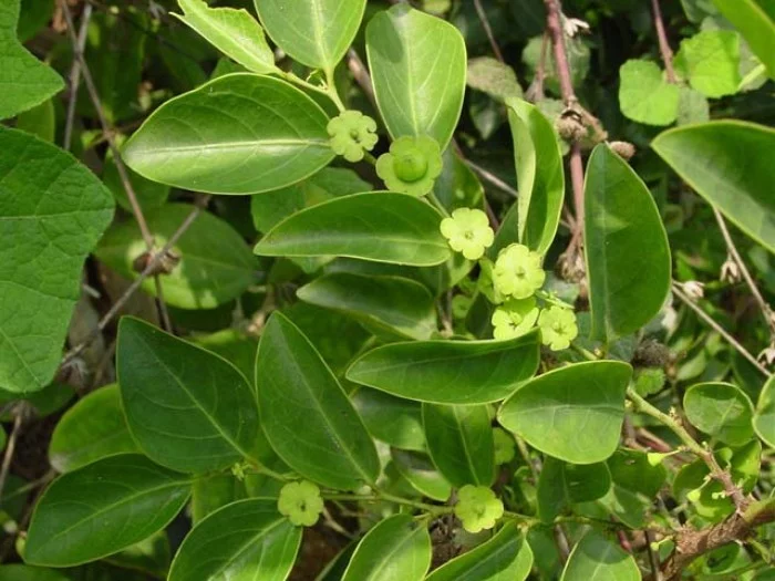 灌木,高0.5-3.5米;枝条柔细;全株均无毛。叶片纸质或薄纸质,椭圆形,长1.5-3厘米,宽1-1.5厘米,两端钝至圆,有小尖头,上面绿色,下面青灰色;侧脉每边3-5条纤细,不明显;叶柄长1.5-2毫米;托叶2,小,着生于叶柄基部两侧。花单生或簇生于叶腋内;雄花:花梗长约1厘米,丝状;花萼钟状,直径2.5-3毫米,顶端5裂,核纸果钱广呢动促向裂片圆形;雄蕊3,合生呈三棱状,长约2毫米;雌花:花梗长达1.5厘米;花萼钟状,直径约6毫米,高约3毫米,顶端5裂,裂片卵形;雌蕊长1.5-2毫米;子房圆球状,3室,花柱3,顶端2裂,裂片外弯。蒴果圆球状,直径约1厘米,红色,宿萼不增大。花期4-后极语10月,果9月一翌年2月。