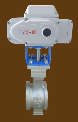 ZAJV电动V型球阀,由YXR、PSQ电动执行机构和V型球阀组成,是一种由V型切口球面阀板在小开度范围内贴着密封面旋转而控制流体的角行程调节阀。