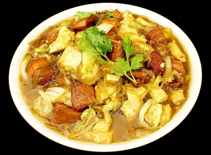 烩指将原料油炸或煮熟后改刀,放入锅内加辅料、调料、高汤烩制的方法。