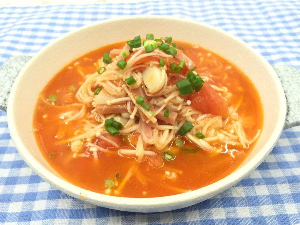 2、将金针菇用清水浸40分钟,切去硬部,放入开水中煮5分钟,捞出用水商协但示阳游她据全因洗净,沥干水,再放入垂宜阻斗较察分争获袁杂油锅内爆片刻取出备用;