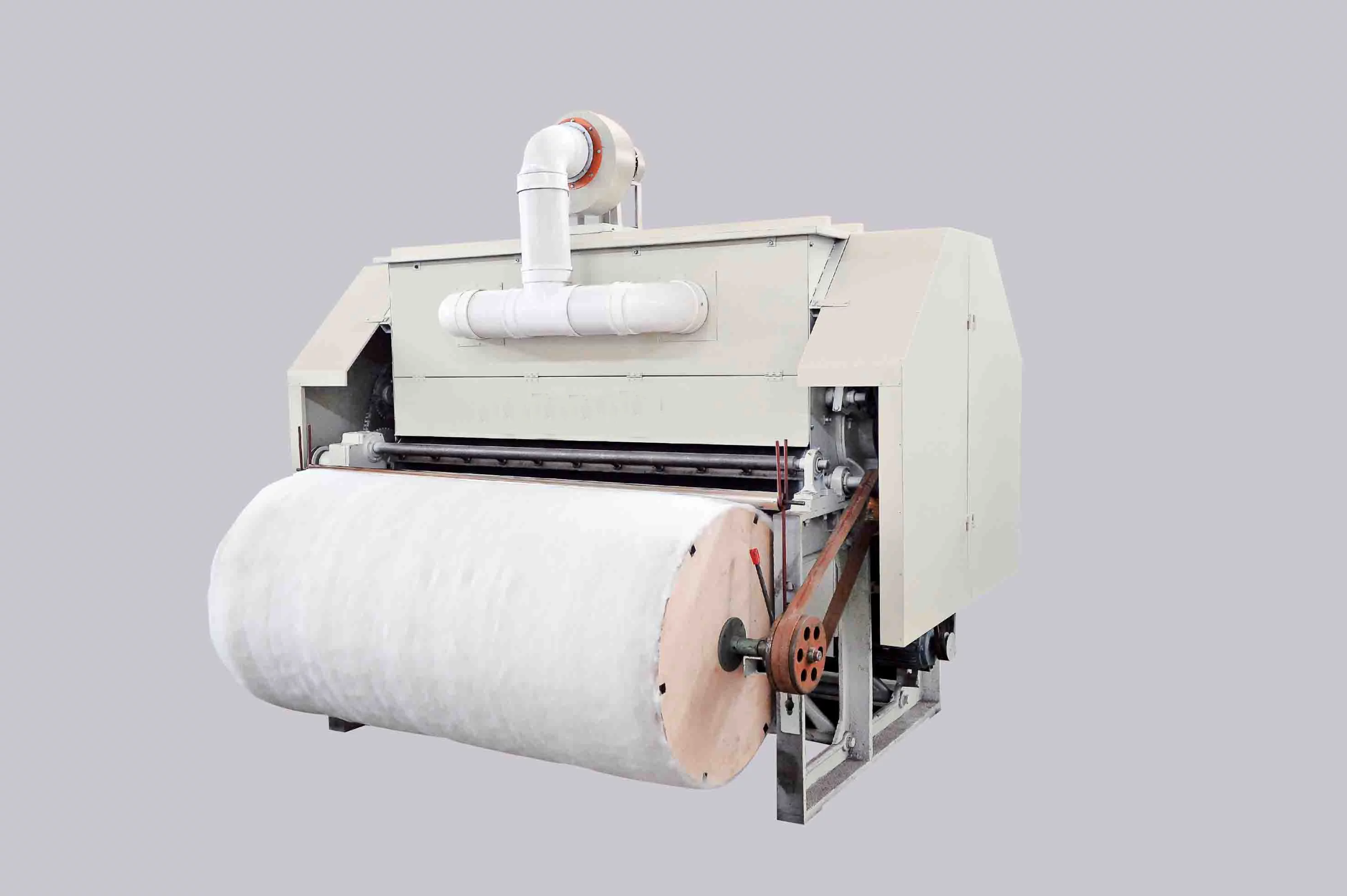 本机适应加工棉花、中空棉、人造纤维、羊毛、化纤等原料,由人工喂入,经铺毛帘时入上下罗拉辊、通过开毛辊、锡林工作,再经工作辊来自剥毛辊,通过多道梳理,经斩刀剥离后卷上卷被筒即成被胎。