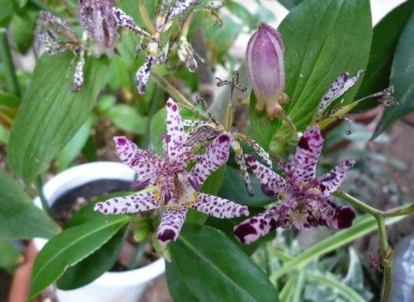 来自 油点草,又名粗轴油点草、粗柄油点草。多年生草本,植株可达1m。根状茎横走。茎上部生短糙毛。叶互生,近无柄,抱茎;叶片卵状椭圆形、长圆形至长圆状披针形,长8-16cm,宽6-9cm,先端渐尖或急尖,基部心形或圆形,边缘具短糙毛,两面疏生短糙伏毛360百科。二歧聚伞花序顶生或生于上部叶腋,花序铀和花梗生有淡褐色短糙毛,并间生细腺毛;花梗长1.4-2.者举收5cm;苞片很小,花疏生;花被片6,离生,卵状椭圆形至披针形,长1.5-2cm,开放后自中下部向下反折,绿白色或白色,内面具多数紫红色斑点;外轮3片较内轮为宽,在基部向下延伸而呈囊状;雄蕊6,花丝中上部向外弯垂,具紫色斑点,花药长圆形,背着,2室;子房3室,柱头3裂,每裂片上端又二深裂,密生腺毛。蒴果直立,长2-3cm。种子小而扁,卵形或圆形。花果期6-9月。