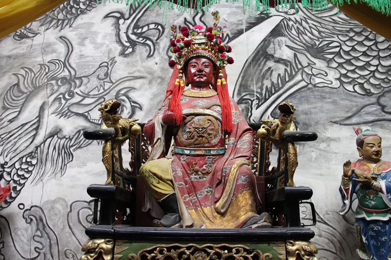 文身为坐式,金面金身,头戴"金圣冠", 即"戏神"装扮。