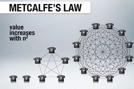 90年代以来,互联网络不仅呈现了这种超乎寻常的指数增长趋势,而且爆炸性地向经济和社会各个领域进行广泛的渗透和扩张。计算机网络的数目越多,它对经济和社会的影响就越大。换句话说就是,计算机网络的价值等于其结点数目的平方。梅特卡夫法则揭示了互联网的价值随着用户数量的增长而呈算术级数增长或二次方程式的增长的规则。