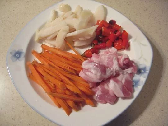 - 主要食材 瘦猪肉,竹笋,胡萝卜