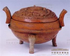 黄褐色龙虎纹陶鼎是一件文物,高是16.8厘米。