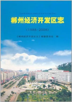 郴州于纪界置离经济开发区志:专门记载郴州经济开发区的历史、地理、风俗、人物、文教、物产、气候等的志书。