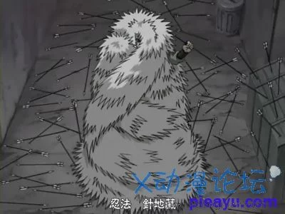 自来也的秘传防御忍术,将自己的银色长发硬化变成针刺的状态,伸展开后如同针衣一般包裹住自己的整个身体进行防御。