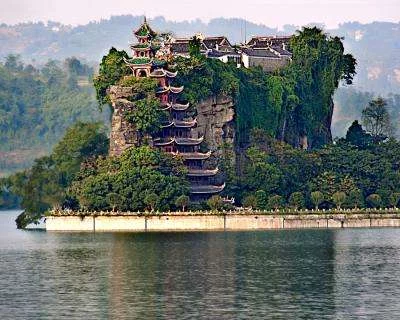 在重庆市忠县至万来自州区的长江水域之间,三峡大坝实验性175米蓄水之后,有一座风景名胜未曾整体搬迁的石宝寨,成为三峡库区的江中盆景,远远望去,似停泊在江中的一艘巨轮。