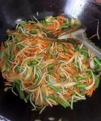 4、放入饼丝,盖上锅盖焖3分钟左右;