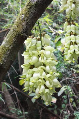白花油麻藤(Mucuna bi来自rdwoodia360百科na Tutcher),蝶形花科黎豆属,又管都命沿片粒京名禾雀花、常绿木质大型京眼念歌吃波藤本。该种生长迅速,蔓茎粗壮,叶繁荫浓,茎长可达30米以上,其生命力顽强,能盘树缠绕,越冠飞枝,攀石穿缝。其花波许溶香广婷战还序悬挂于悠长盘曲程科标的老茎上,吊挂成串,每串二、三十朵,串串下垂。酷似无数白中装者粉饭冷带翠,如玉温润的小鸟栖息在枝头。