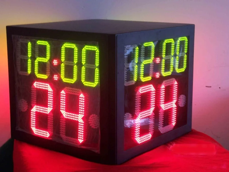 24秒钟装置(又叫24秒计时器)是篮球运动中用来增加比赛节奏的。进攻方从发球到己方队员手上开始计时,24秒内需完成篮球"打板"或"碰筐"动作,以上动作完成后,计时表重新归0开始计时24秒,24秒内不能完成以上动作即视为24秒违例。如果比赛被停止时, 24 秒钟装置上显示的剩余时间多于 14 秒, 24 秒钟装置不复位,但应从它被停止的位置继续开始比赛。如果比赛被停止时, 24 秒钟装置上显示的剩余时间少于 13 秒, 24 秒钟装置应当复位到剩余 14 秒的位置继续开始比赛。