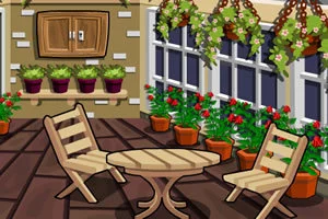10、进入花园,在右边第二棵吊兰处得到铁锹(书房中对窗台上花盆使用),对蓝色花朵右边的地板使用锤子,进入地下室