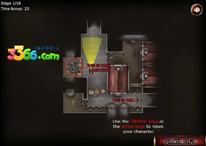 一款非常好玩的游戏,玩起来让人心惊胆战啊!现在,你一个人来到这座暗黑的地下城,你的任务是摧毁这里的一切并且来自干掉可恶的敌人,不过,你要小心,千万不要被发现,否则完蛋了。