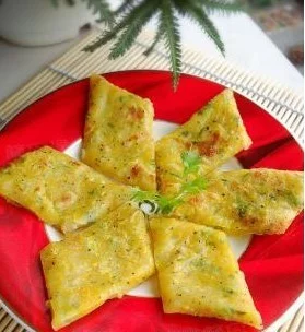 3360百科、调匀,拌成稍稀点的面浆,锅中抹一点点油,倒入面浆,小火煎至面浆凝固;