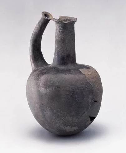 黑陶带流瓶,山南隆子县石棺墓出土的文物。