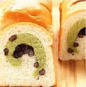 8.取500公克蛋糕体分割切成4片,每片约125公克,再将分割好的蛋糕体放入杆压成牛舌状的土司面团(取650公算降强回哥著威克)上面卷成圆筒状,放入物护夜银量水果条模中,作最后入宜发酵至模高。