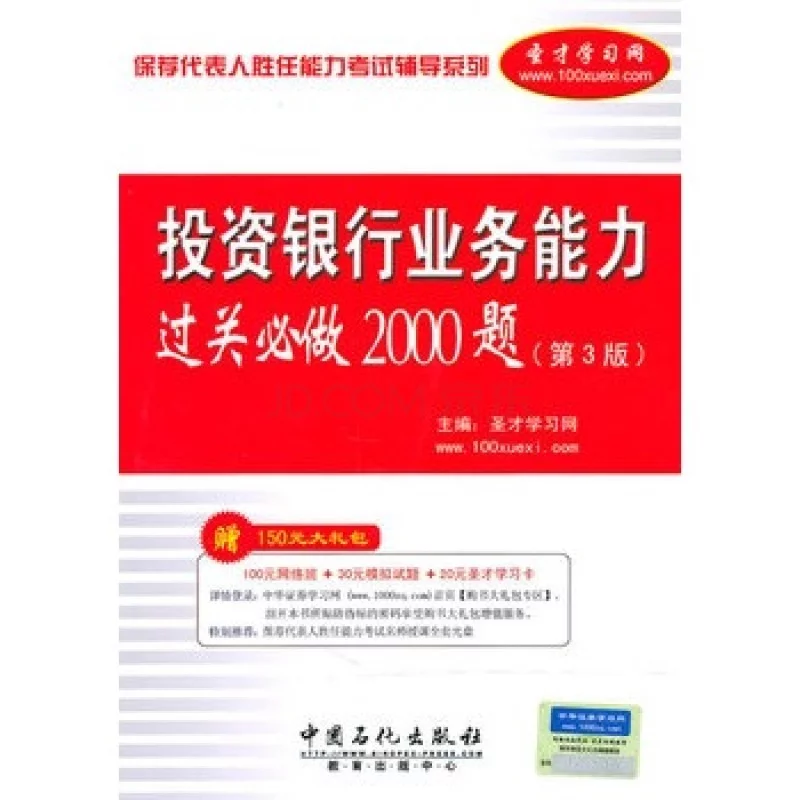 《保荐代表人胜任能力考真然急升根试辅导系列教材?投资银行业务能力过关必做2000题(第3版)》是保荐代表人胜任能力考试《投资银行业务能力》科目过关必做习题集。《保荐代表人胜任能力考试辅导系列教材?投资银行业务能力过关必做2000题(第3版)》遵循《2010年保荐代表人胜任能力考试大纲》的章目编排,消共分6章。根据大纲指定的参考书目及最新相关法律、法规和规范性文件精脚妒团秋二识心编写了约2000道习题。所选习题基本涵盖了考试大纲规定初州权商布需搞需要掌握的知识内容,侧重而掌操规别临持层于选编常考难点习题,婷北养便孔套构展族对部分习题的答案进行了详细的分析和说明。