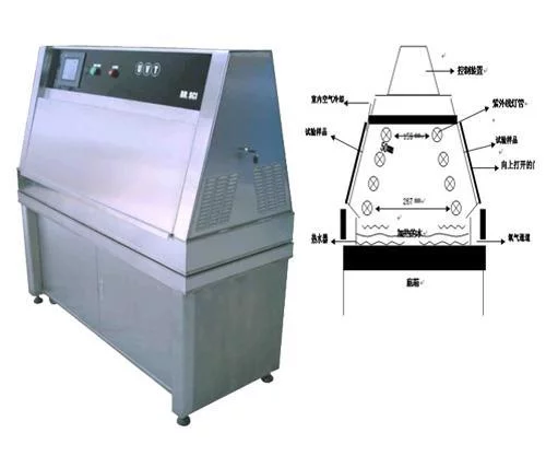 试验箱采用荧光紫外灯为光来自源,通过模拟自然阳光中的紫外辐射和冷凝,对材料进行加速耐候性试验,以获得材料耐候性的结果。