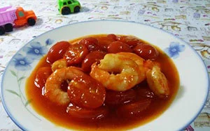 圣女果虾肉,以圣女果、虾肉、番茄沙司为主料制作的菜品。