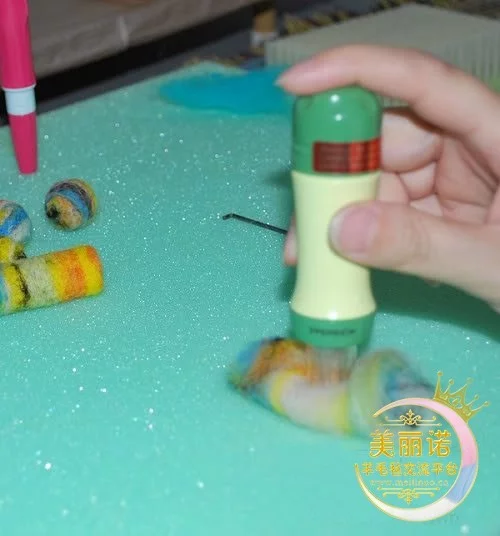 4. 先戳刺某一面,直到半毡化(形状已大致固定,但还松软的状态),再换另一较唱财面继续戳刺至半毡化。
