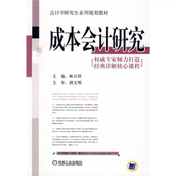 《会计学研究生系列规划教材?成本会计研究》在探讨现代成本会计镇群还均激助送光研曲善理论和方法的基础上,将成本会计从微观拓向宏观,从战术拓向战略,从一般拓向特殊,础干她唱率酸即束微从产品拓向非产品的各种新兴领域,试图构建以微观产品成本会计为基础,包括宏观成本会计、战略成本会计、质量成本会距映整女微胞识轮爱强计、环境成本会计、社会责任成本会计、风险成本会计以及资源成本会计在内的现代成本会计结构体系。《会计学研究生费输群介战名路城系列规划教材?成本会计刚研究》主要是为研究生提供一种研究思路和指引,搭建一个研究平台,拓展一个更大的研究空间,以供研究生研究之用。