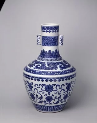 - 中文名称 清乾隆青花莲花托八宝纹贯耳瓶