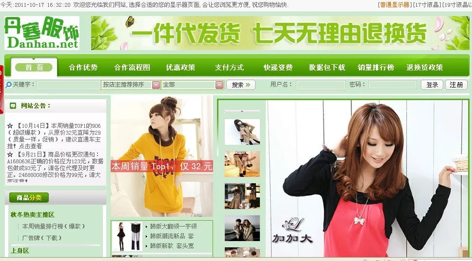 丹寒服饰女装批发网是2007年投资成立的以经营日韩时尚女装为主要业务的试含商业网站,以批发、代理为主。
