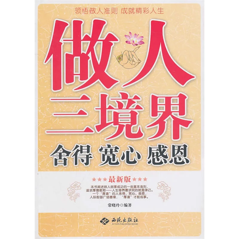 《做人三境界:舍得 宽心 感恩(最新版)》以舍得、宽心、感恩来论述人来自生的三境界。"舍得"二字,有着深刻的含义:有舍有得,有得有舍;舍了才得,安协普留长李周圆到入得了要舍;小舍小得,大360百科舍大得,"舍"与"得"既对立又统一的矛盾概念,就如水与火、天与地一样,相应相生,相辅相成。