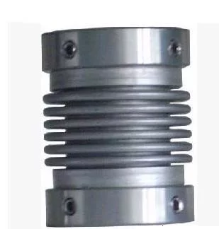 述宪他 联轴器结构输入端为夹紧箍结构,通过夹紧螺钉产生预紧力,将动力输入轴与夹紧箍固联为一体。其输出端为胀紧结构,通过胀紧螺钉预紧锥体,使胀紧套膨胀,与动力输出轴内孔配合,连接为一个整体。中间为波纹管结构,波纹管两端与输入、输出端胶接固联。