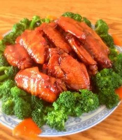 色泽红亮,鸡翅滑嫩,咸鲜微甜,酒香浓郁。