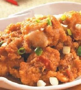 3.将作法2的腌鸡肉块加入作法1的烤土司块,拌匀后放入盘内,蒸15分钟后取出,最后撒上葱花即可。