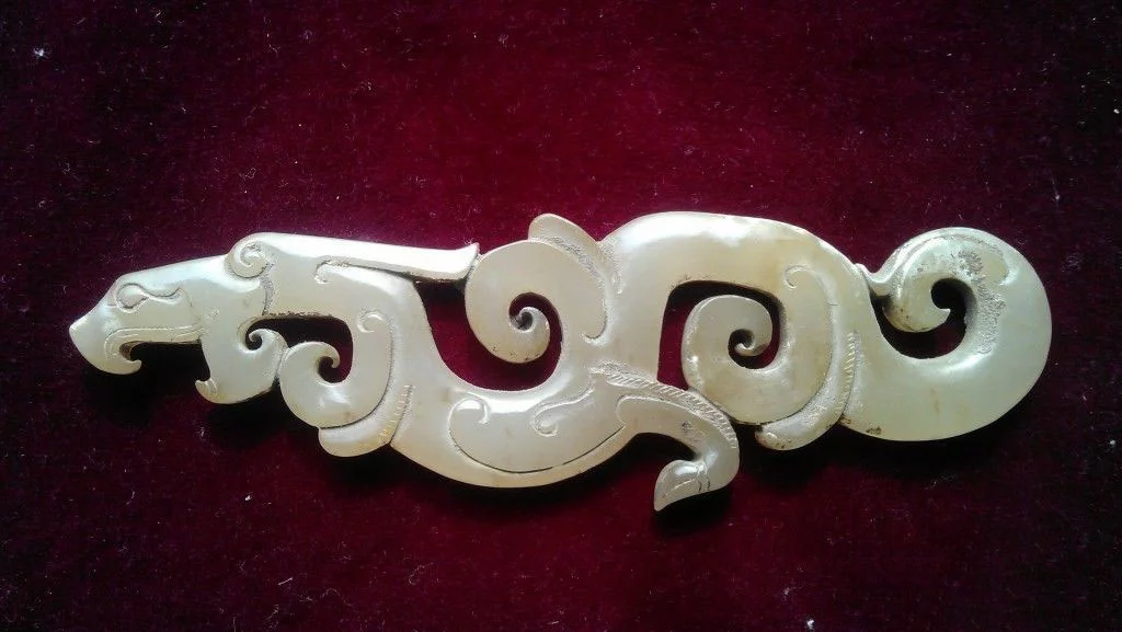 龙形玉饰是在1970年宁乡黄材难府王家坟山出土的商朝的文物。长10.5厘米,宽4.1厘米。